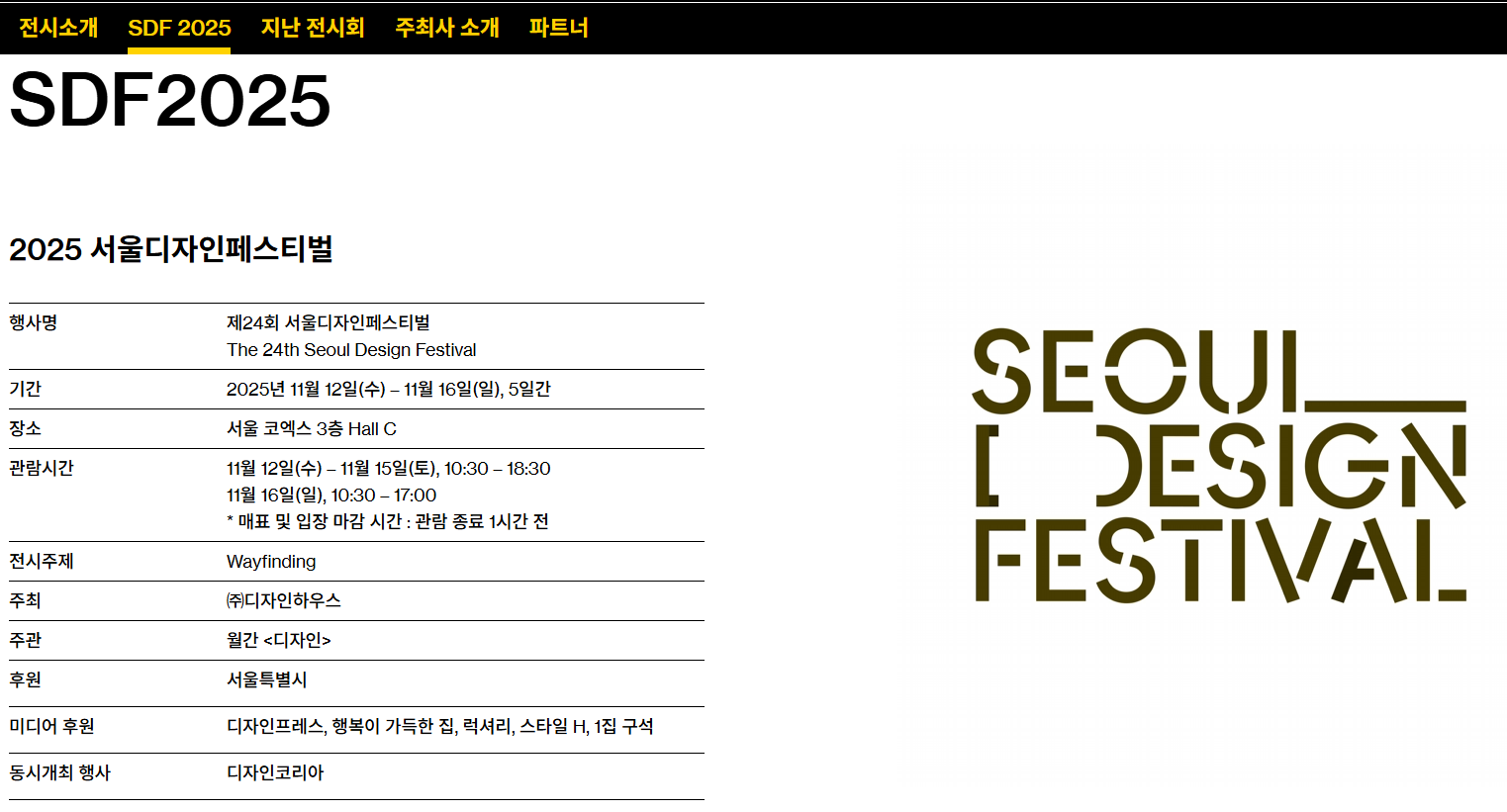 - 서울디자인페스티벌은 디자이너, 디자인 브랜드, 기업들과 함께 국내외 디자인의 동향을 선보이기 위해 2002년부터 시작된 디자인 콘셉트 및 트랜드 전시회