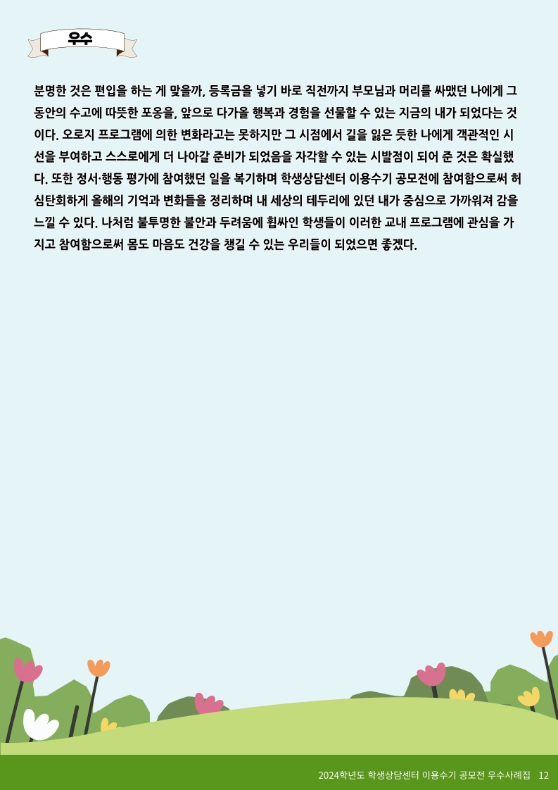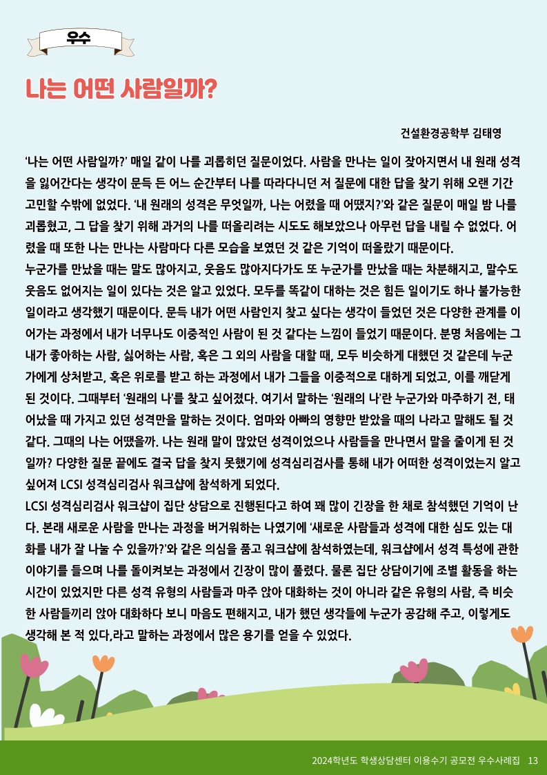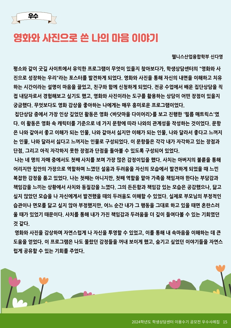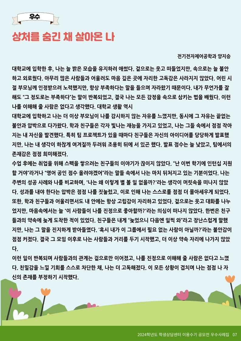 2024학년도 학생상담센터 이용수기 당선작(우수 5편)