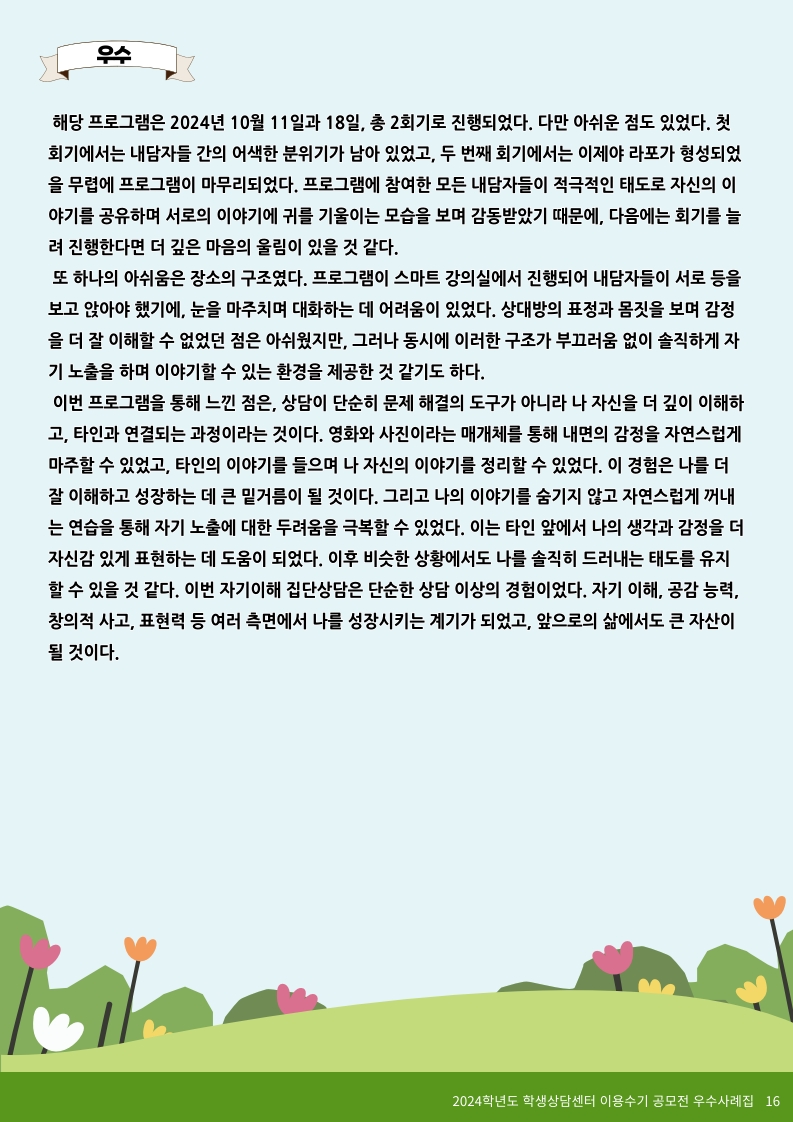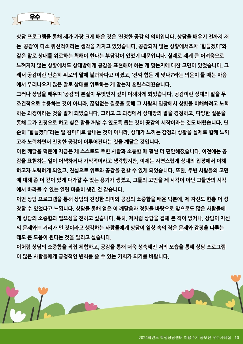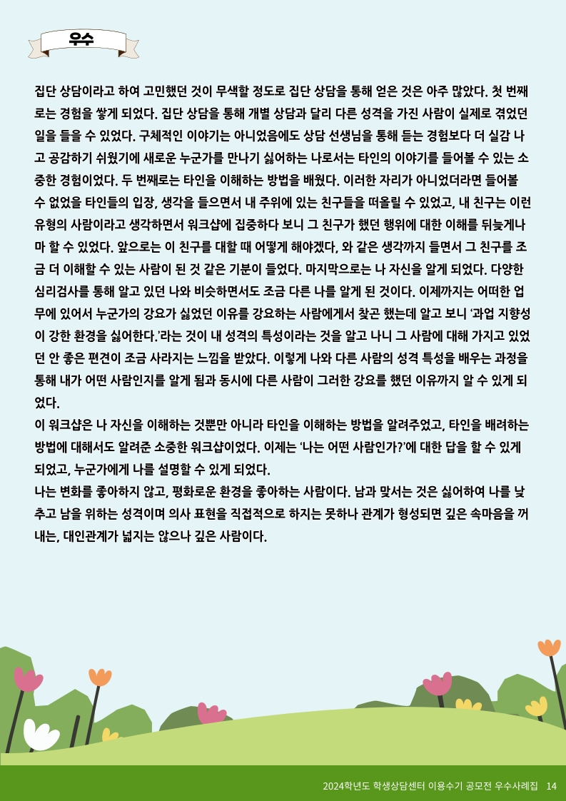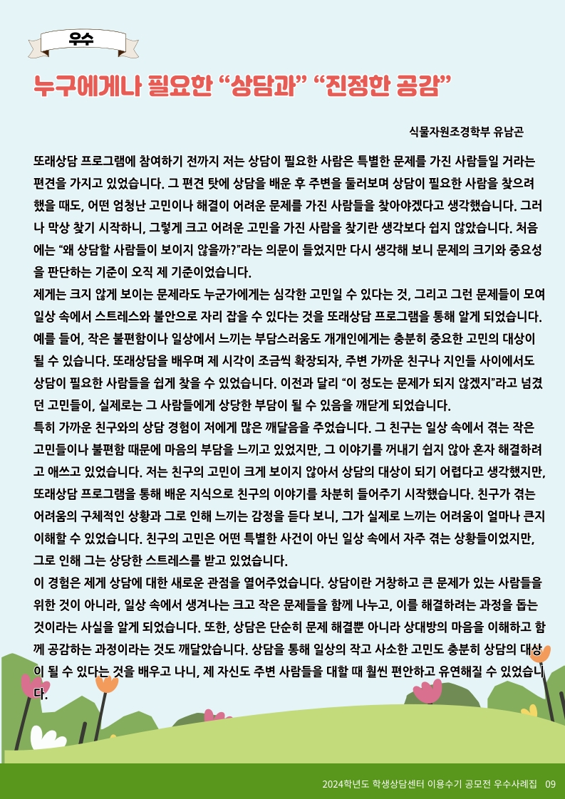 2024학년도 학생상담센터 이용수기 당선작(우수 5편)