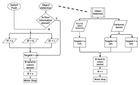 기존의 승강기는 주행 케이블, 이동 케이블 또는 T 케이블로 구성되어 승강기가 이동함에 따라 케이블들도 함께 이동하는 방식을 사용합니다. 그러나 이러한 지속적인 케이블의 움직임은 케이블 내부 선의 절단 사고로 인해 승강기 사고의 가능성이 존재합니다. 이에 따라 기존의 신호선은 블루투스 통신으로, 전력선은 무선 전력 방식을 사용하여 개선하였습니다. 기존의 전력선과 통신선을 교체할 때는 모든 케이블을 교체해야 했지만, 무선 전력 방식을 사용하면 구간별로 코일을 수리함으로써 유지 비용과 시간을 절감할 수 있습니다. 그리고 딥러닝을 활용한 사람 인식을 통해 탑승객이 몇 층으로 가려는지 판단하여 버튼을 누르지 않아도 승강기 카가 자동으로 목표 층으로 이동하도록 개선하였습니다. 또한 승객이 탑승하지 않은 경우에는 승강기 카의 이동속도를 조절하여 대기 시간을 최소화하여 편의성을 높였습니다. 이러한 개선은 실버타운이나 병원과 같이 이동이 불편한 탑승객들이 많은 장소나 아파트 등에 적용될 수 있는 방안으로 작품을 제작하였습니다.
