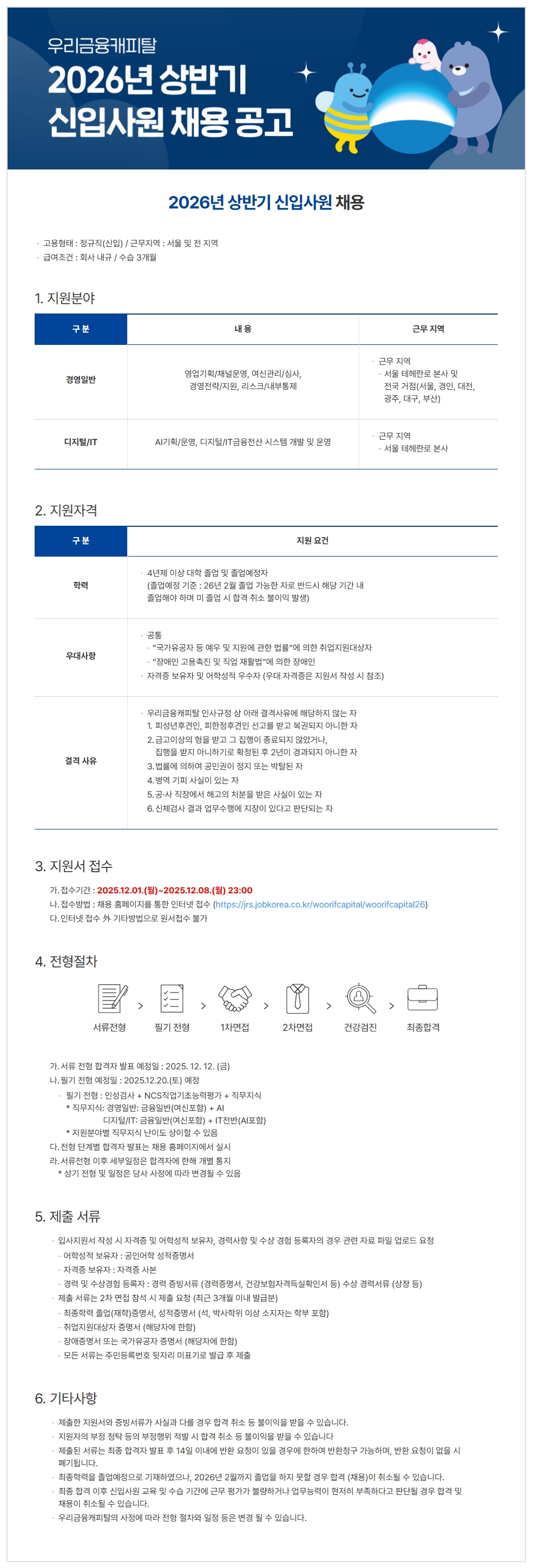 [우리금융캐피탈] 디지털/IT 신입사원 채용