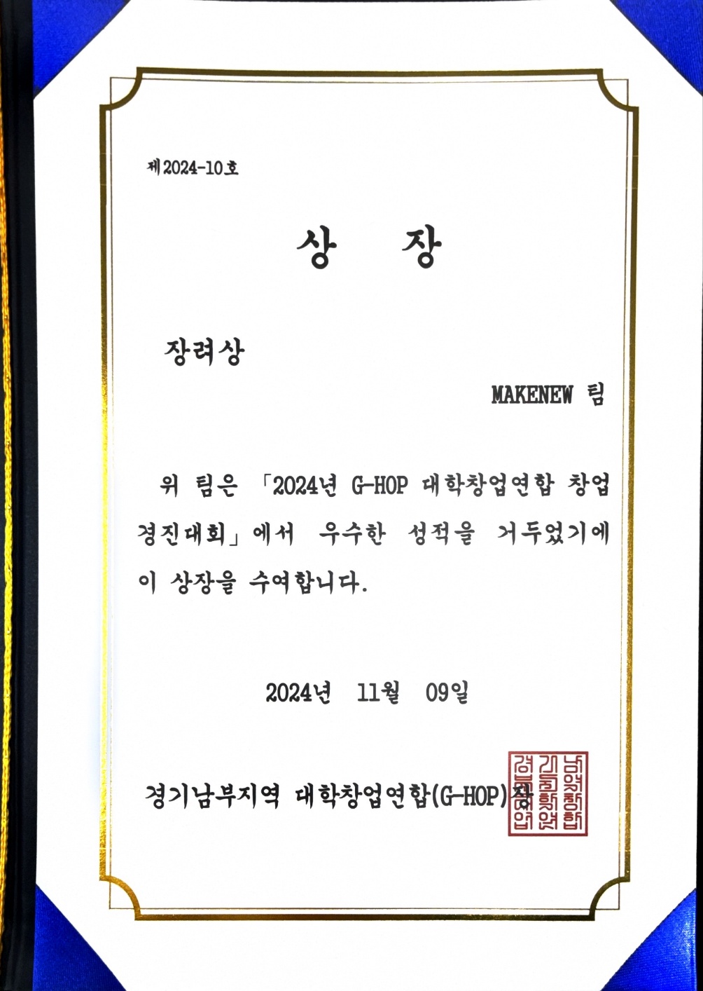 2024년 G-HOP 대학창업연합 창업 경진대회 장려상 수상