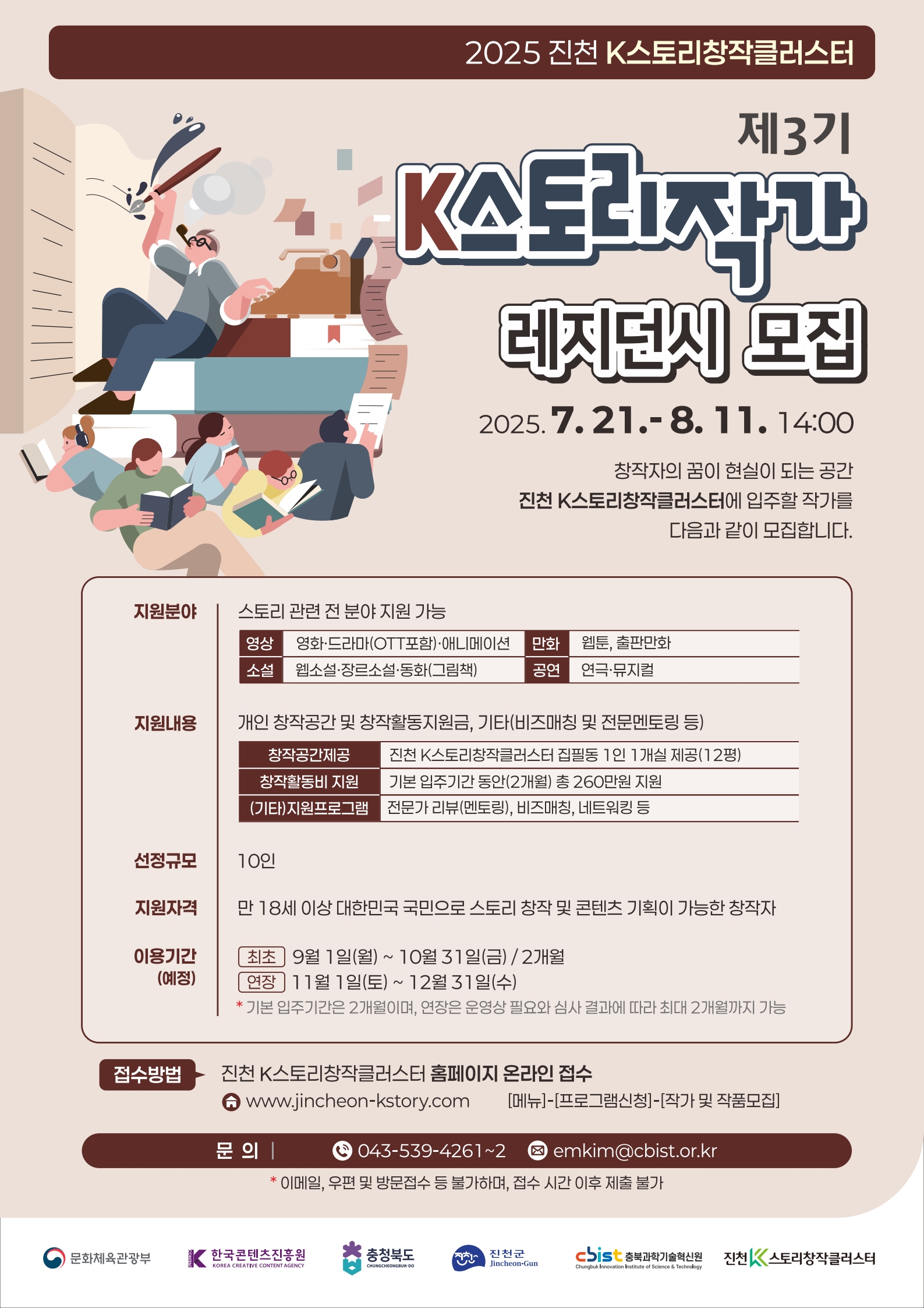 [외부프로그램] 진천 K스토리창작클러스터 「제3기 K스토리작가 레지던시 모집」 홍보