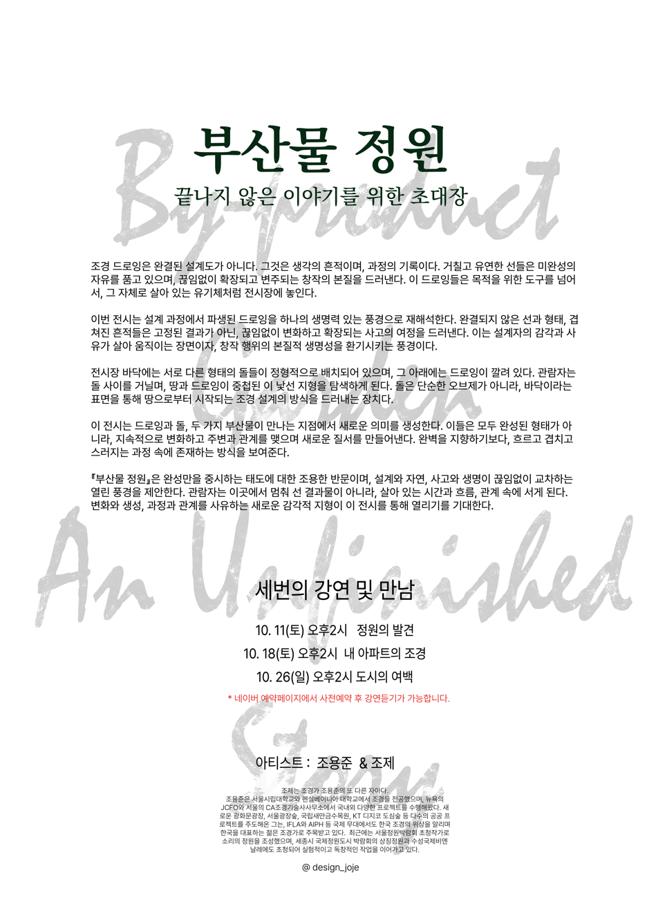 부산물 정원(세번의 강연 및 만남) 포스터와 초대장 안내하오니 관심있는 학생들의 많은 참여 바랍니다.