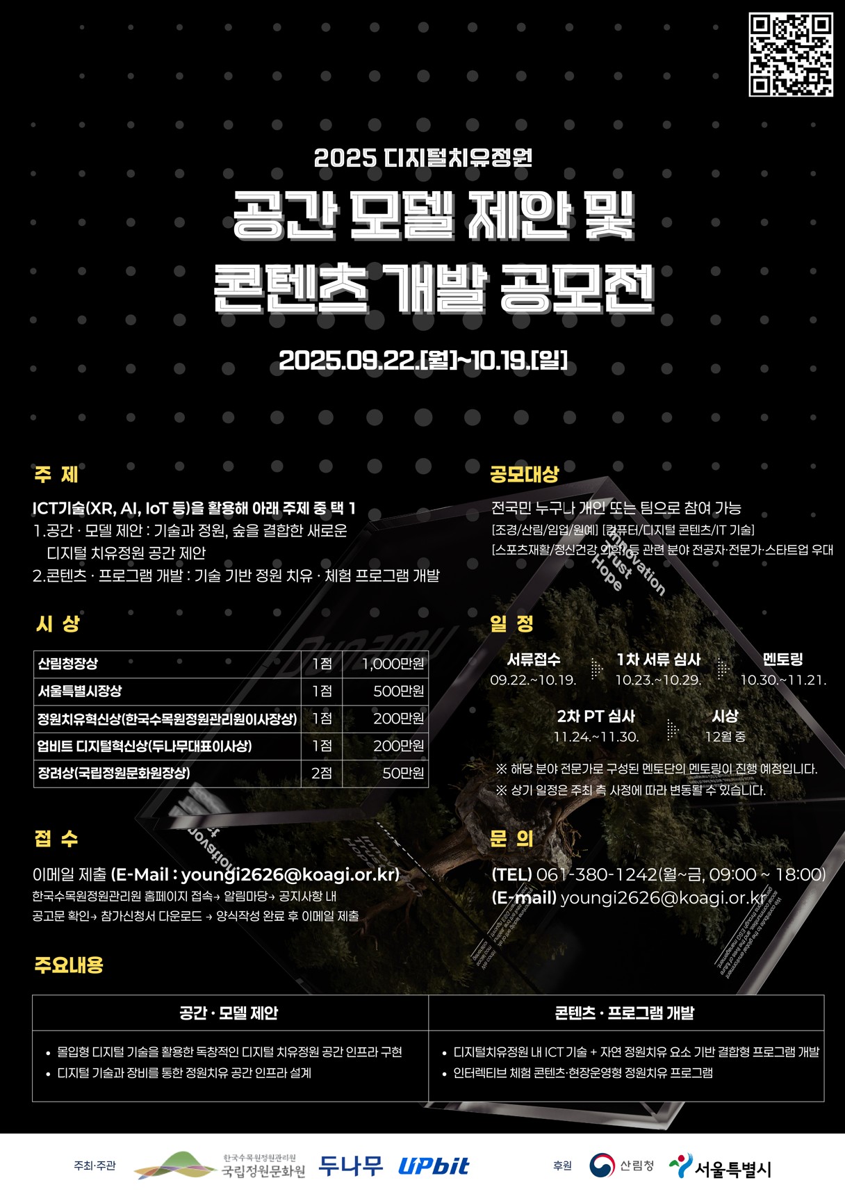 * 공모전 URL 링크: 2025 디지털치유정원 공간 모델 제안 및 정원치유 콘텐츠 개발 공모전 안내 | 서울대학교 컴퓨터공학부