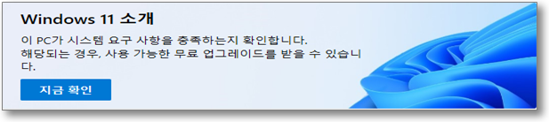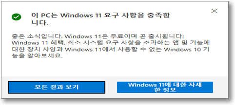 ⑥ PC 상태 검사 앱 실행 시 아래와 같은 메시지가 나오면 Windows 11 설치 준비 완료