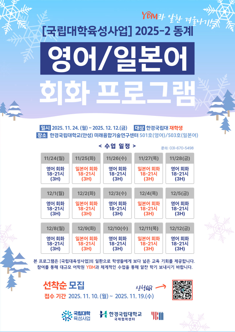 [국립대육성] 2025-2 동계 회화 프로그램 참여 학생을 모집합니다!