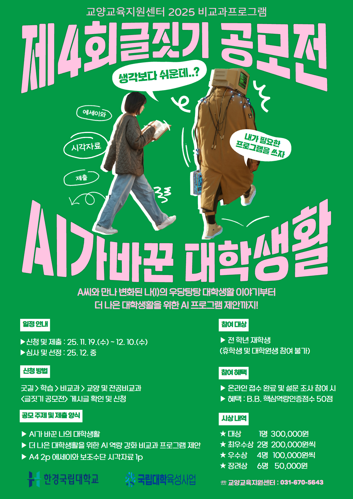 [교양교육지원센터] 2025학년도 제4회 글짓기 공모전 기간연장 ( ~ 12/17 )
