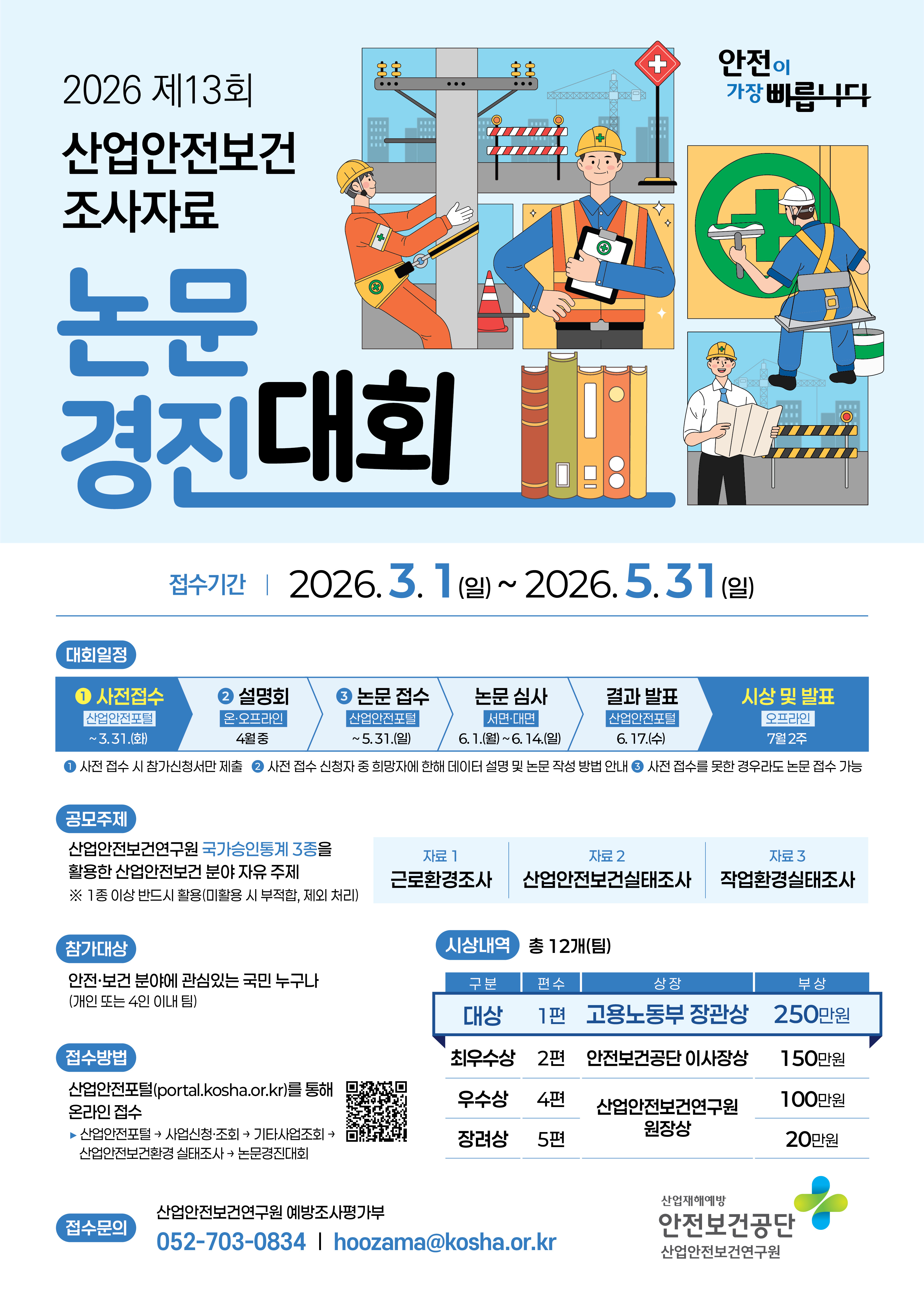 [산업안전보건연구원] 제13회 산업안전보건 조사자료 논문 경진대회 안내