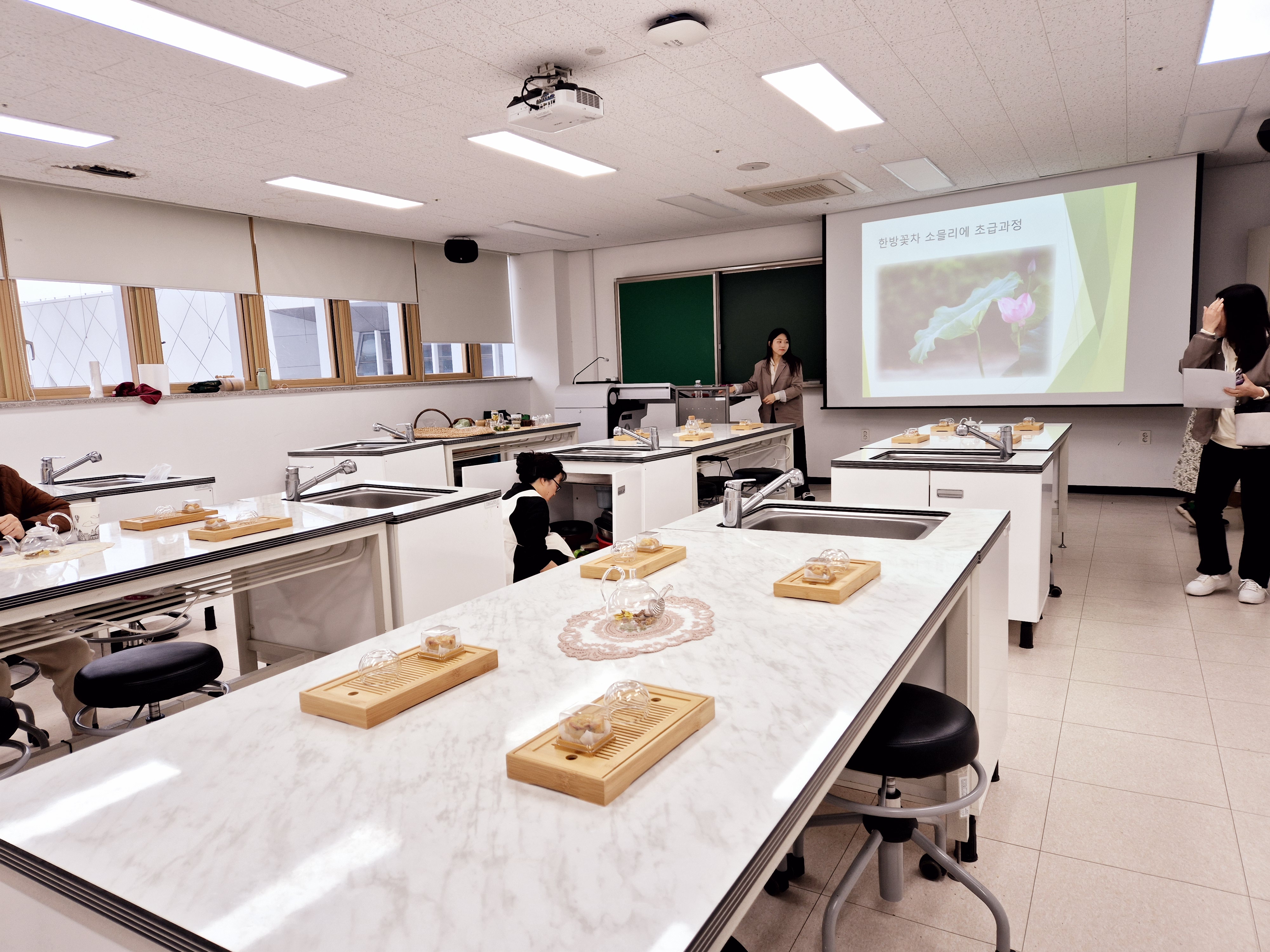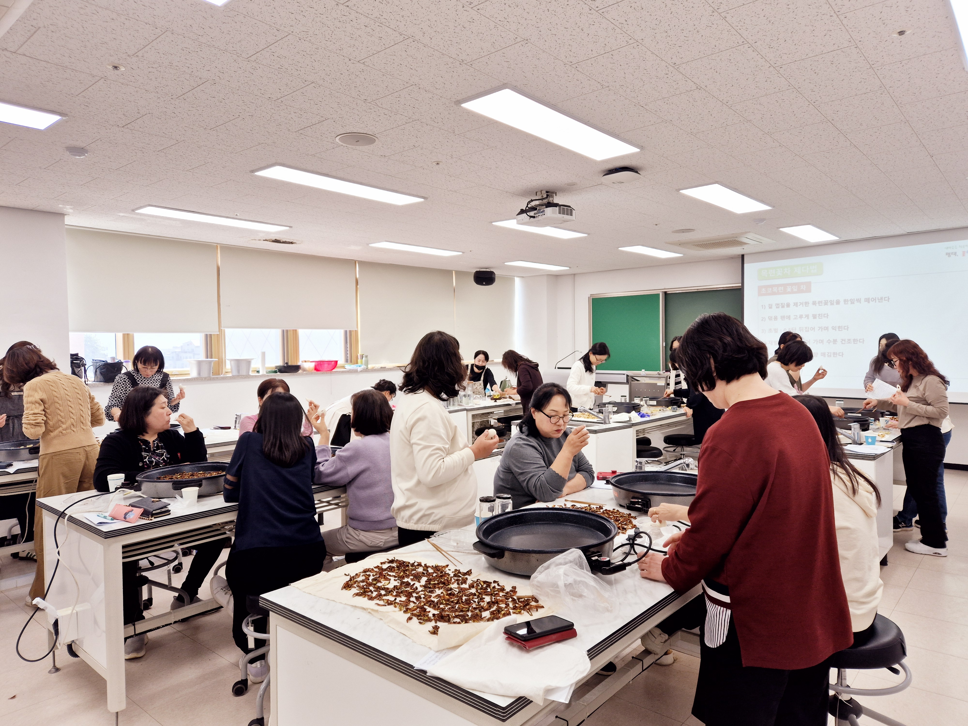 사회공헌 활동을 위해 열정적으로 꽃차를 만들어주신 교육생분들과