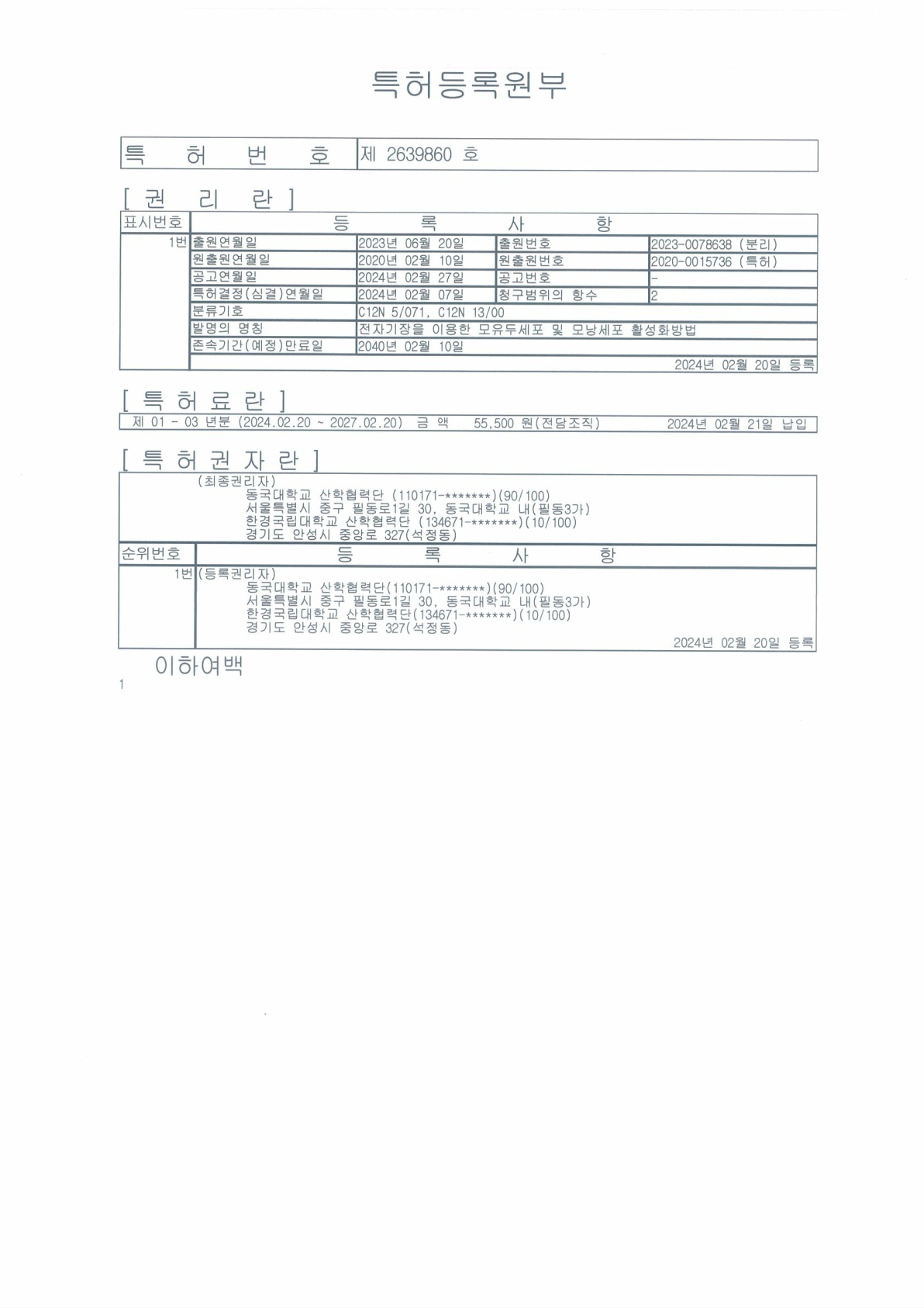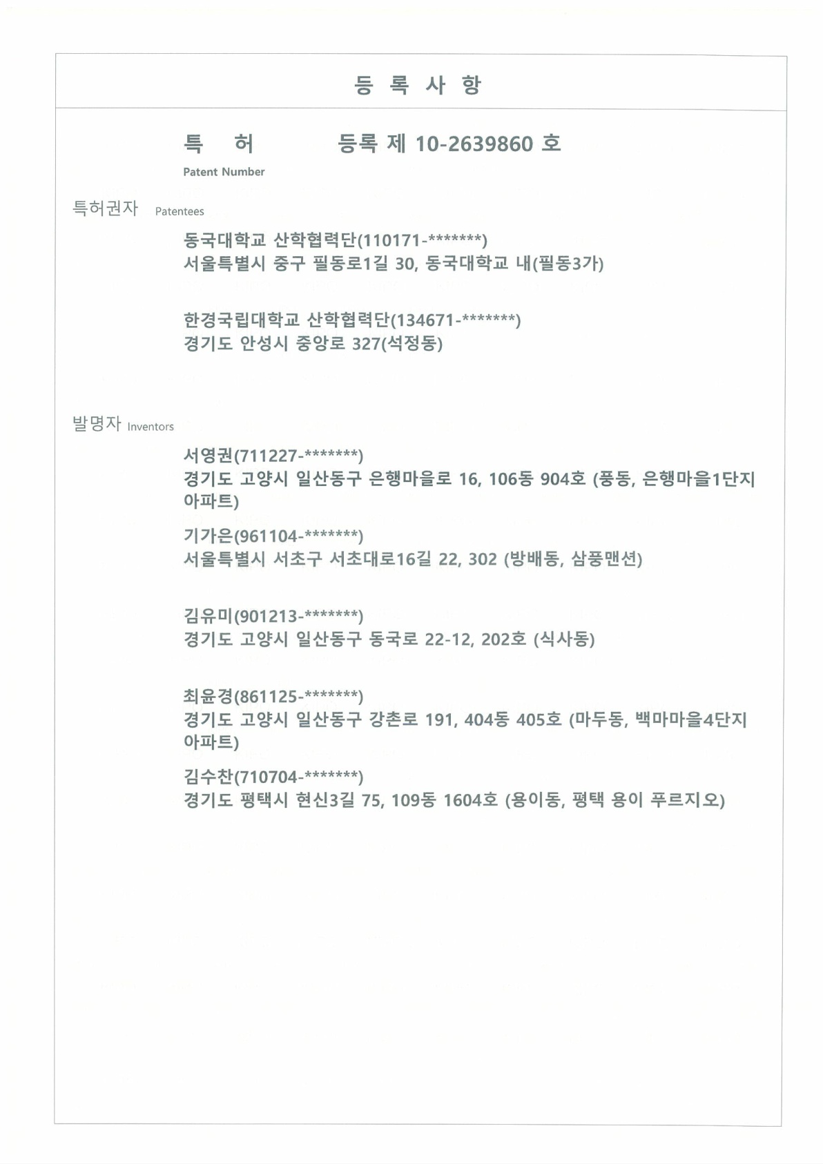 특허증_10-2639860_전자기장을 이용한 모유두세포 및 모낭세포 활성화방법(동국대 공동출원, 김수찬)