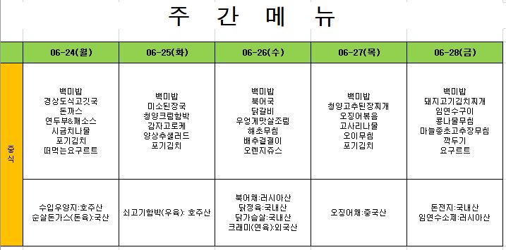 2024. 6. 24. ~ 2024. 6. 28. 주간식단표