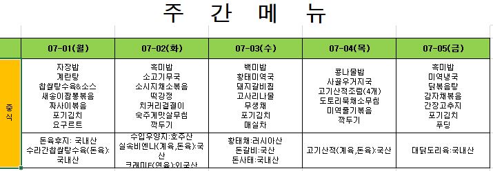 2025. 6. 30. ~ 2025. 7. 4. 주간식단표