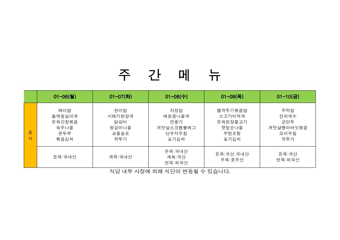 2025. 10. 06. ~ 2025. 10. 10. 주간식단표
