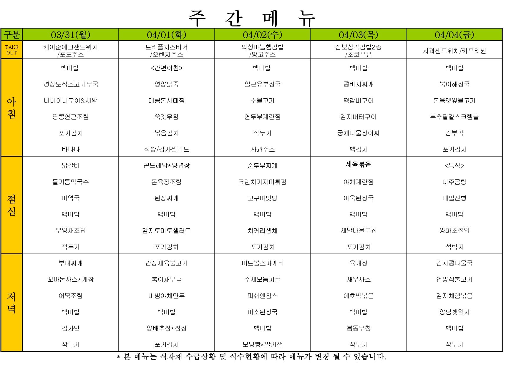2024.4.1. ~ 2024. 4. 5. 주간식단표