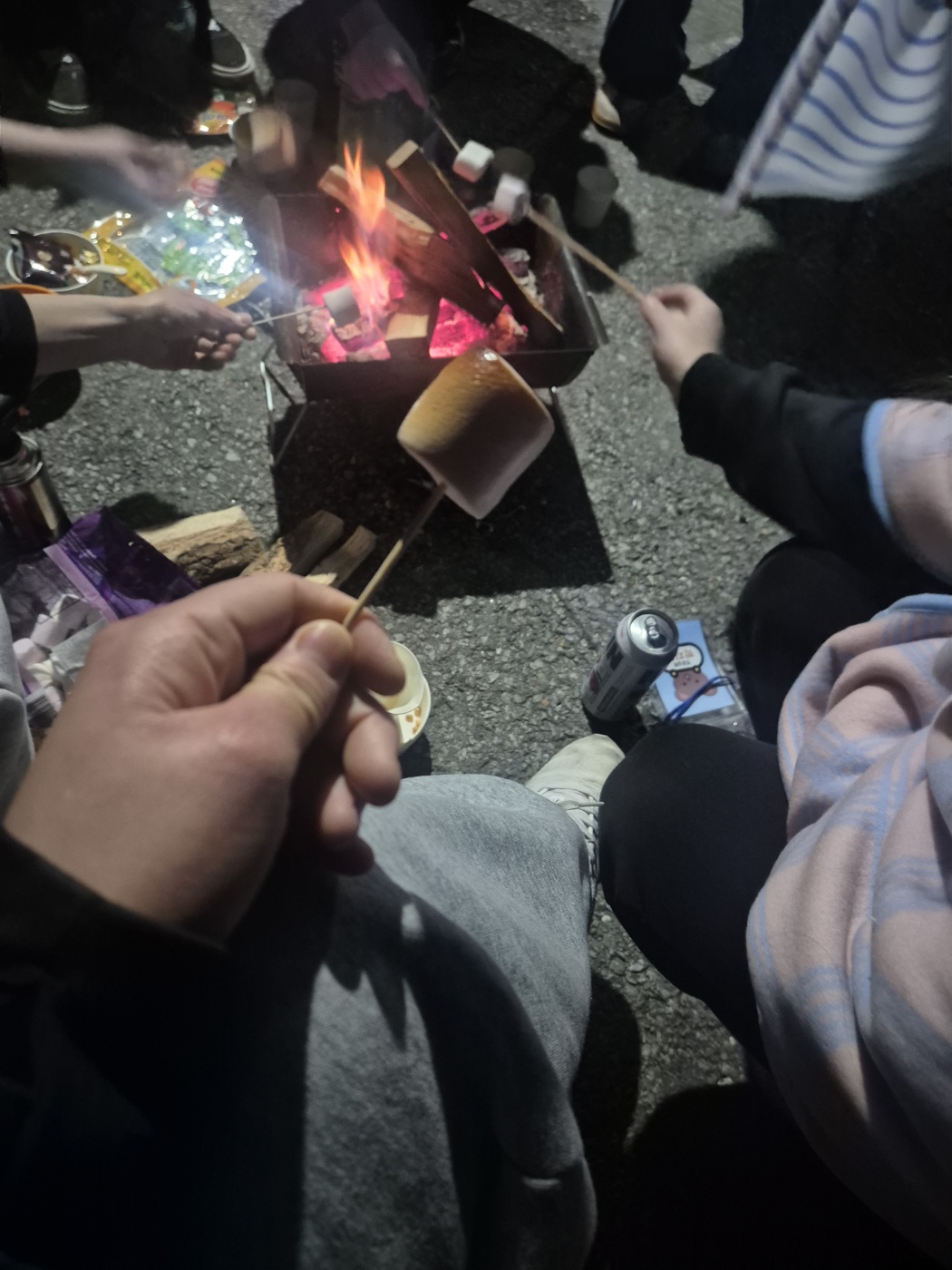 밤에는 불에 둘러 앉아 불멍도 하고 마쉬멜로우도 구워 먹었습니다.