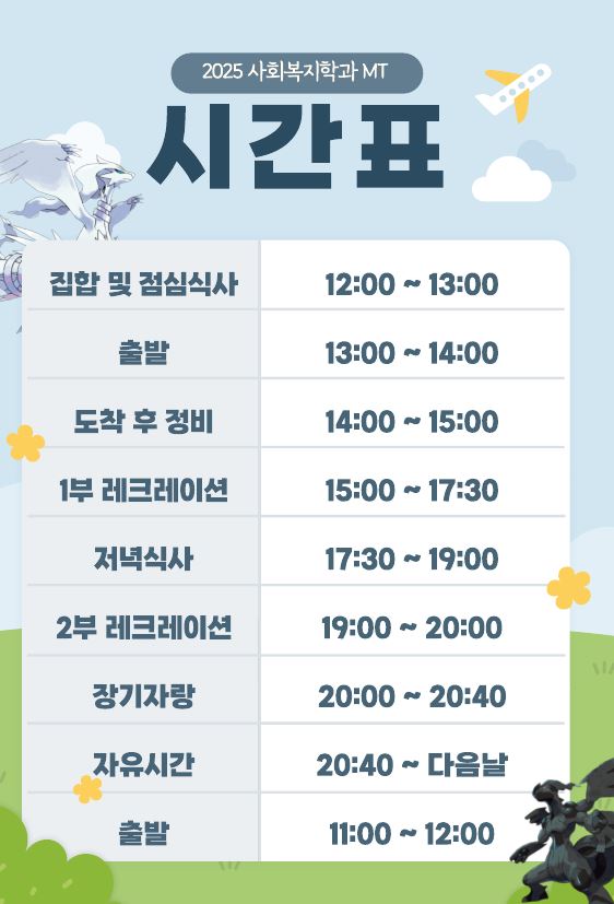 2025년도 사회복지학과 엠티 간략하게 알려드리겠습니다.