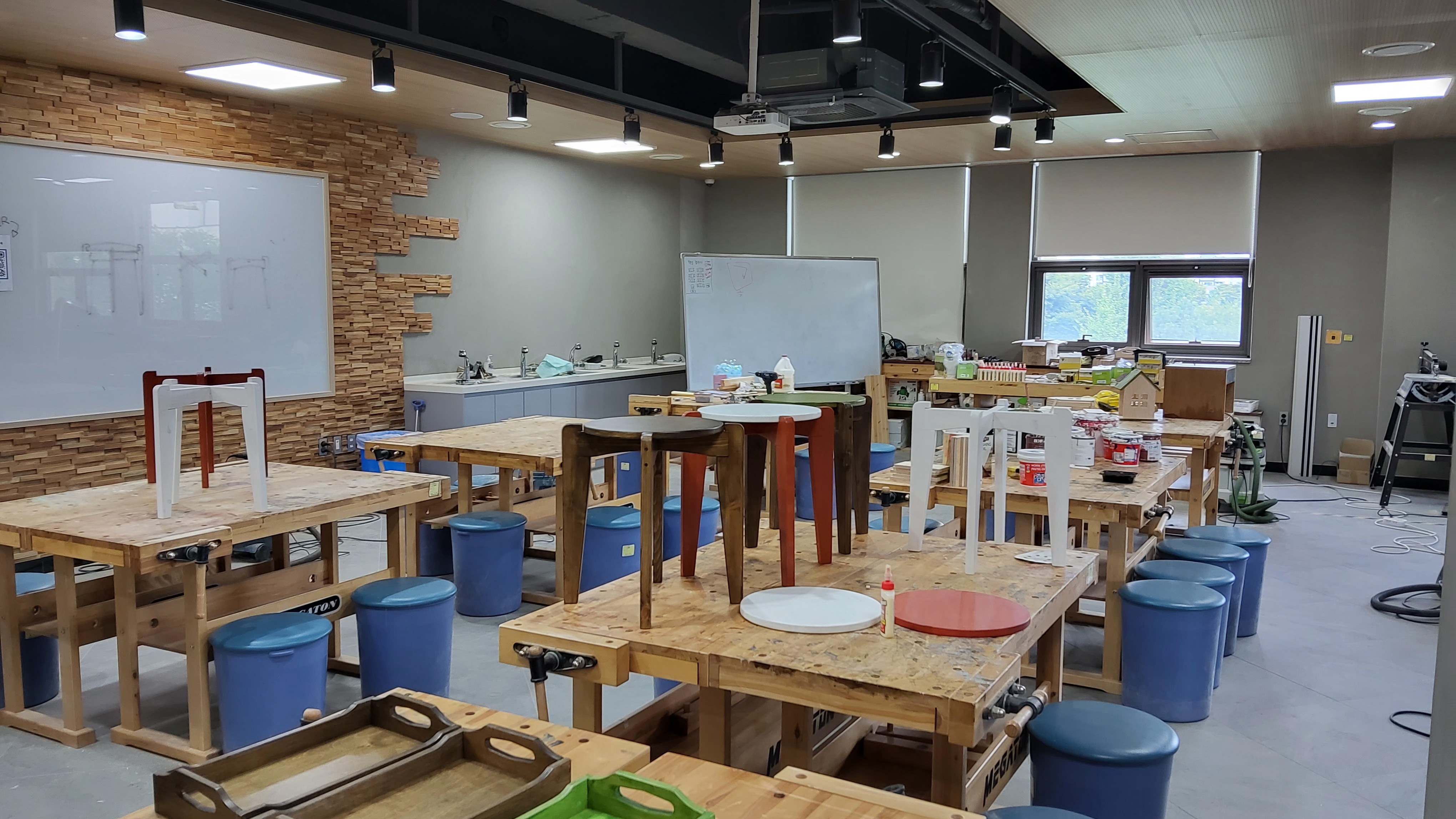 이후 재단 건물을 직접 라운딩하며 시설을 둘러보았습니다. 자율 학습이 가능한 공부 공간, 농구 등 스포츠 활동이 가능한 체육관, 춤 연습실, 그리고 목공을 통해 의자나 선반을