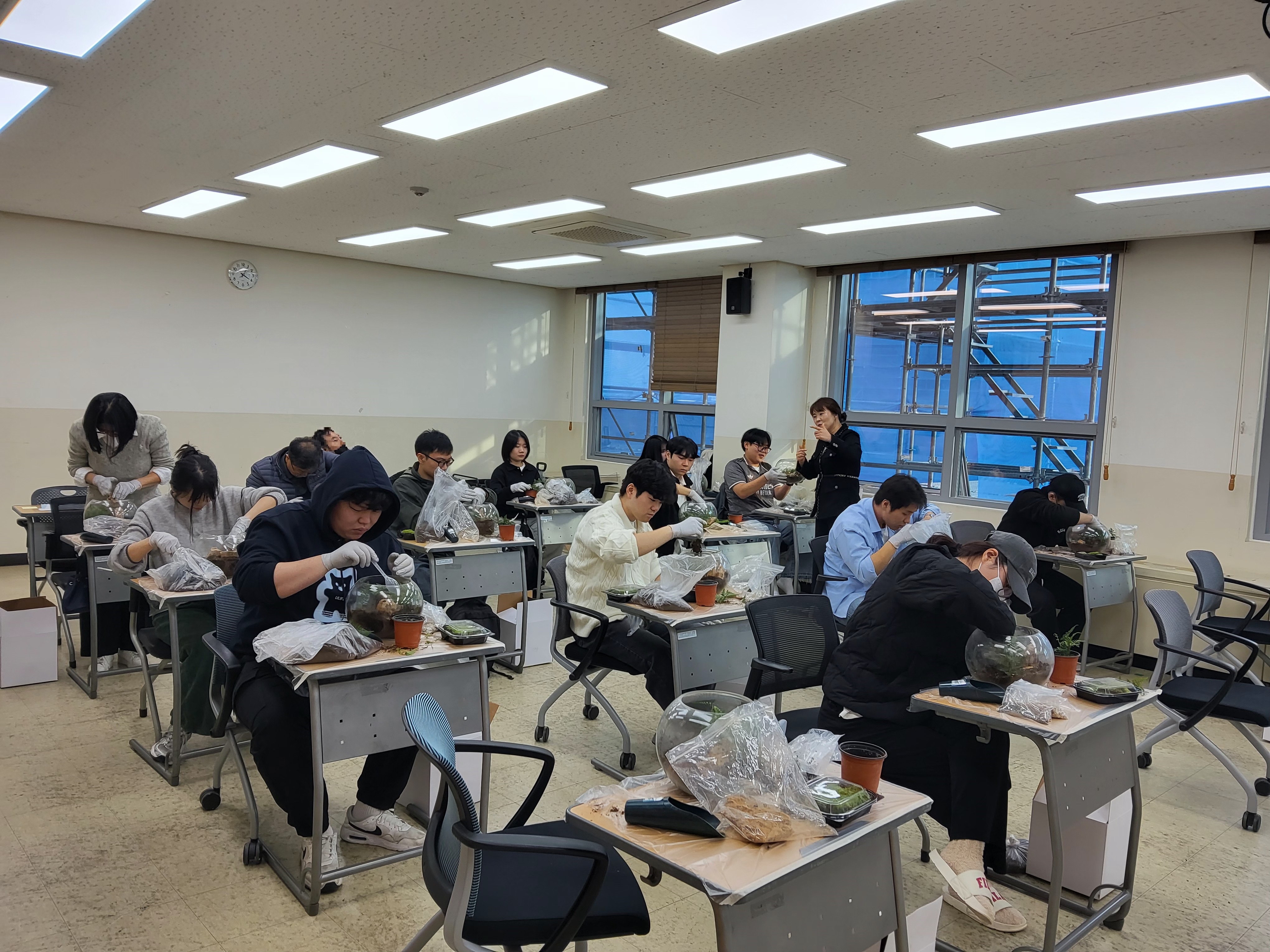 안녕하세요. 10월 30일(목), 한경국립대학교 사회복지학과에서는 안성힐스팜 정현호 대표님을 모시고 ‘습도에 강한 식물을 이용한 테라리움 특강’을 진행했습니다.