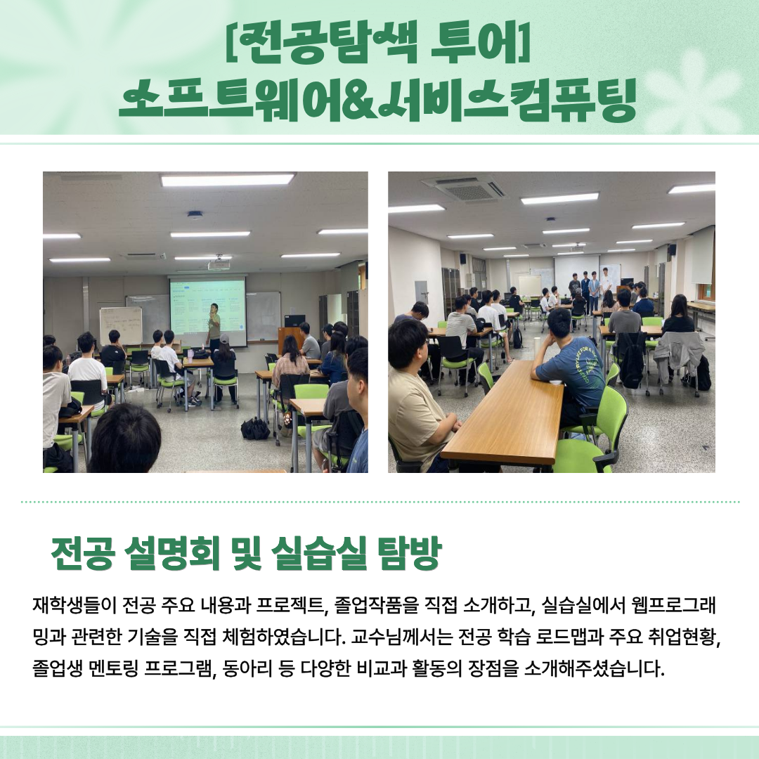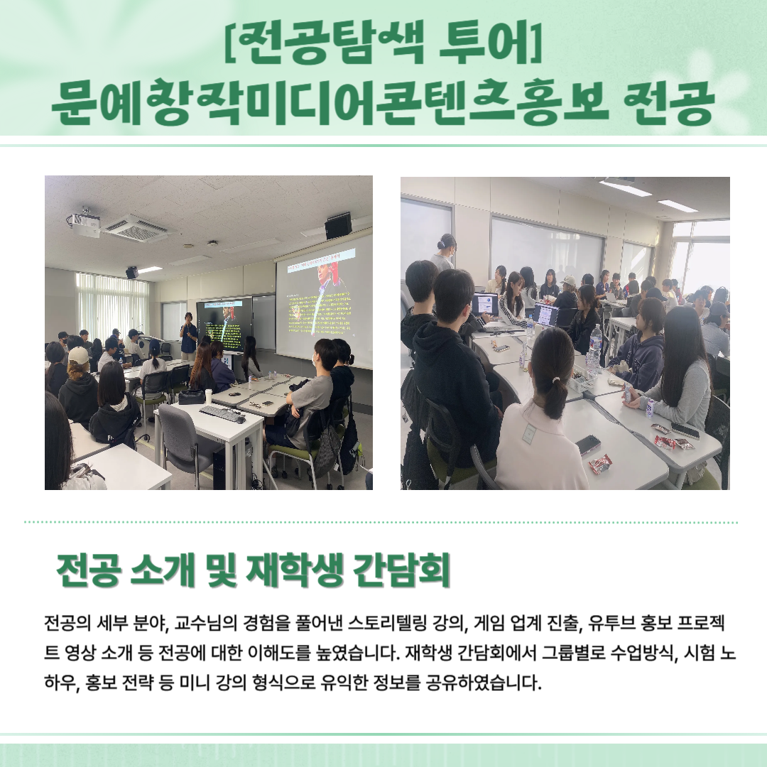 각 전공의 교수님과 조교 선생님, 재학생 선배들의 열정으로 채워진 전공탐색 투어의 여정은 다음달에도 계속 이어집니다🤗