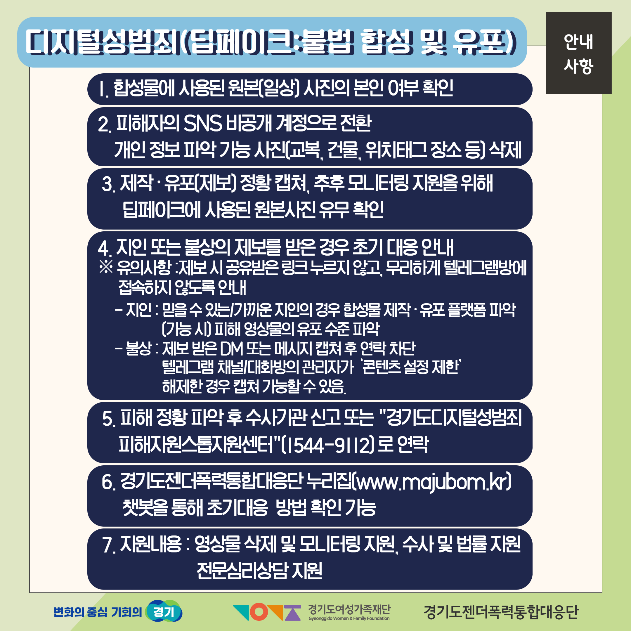 fnctId=bbs,fnctNo=427 단축 url 글번호 78383 [인권센터] 디지털 성범죄(불법 합성 및 유포) 대응 및 예방을 위한 안내 작성일 2024.08.30 수정일 2024.08.30 작성자 총관리자 조회수 4621 첨부파일 첨부파일이(가) 없습니다.