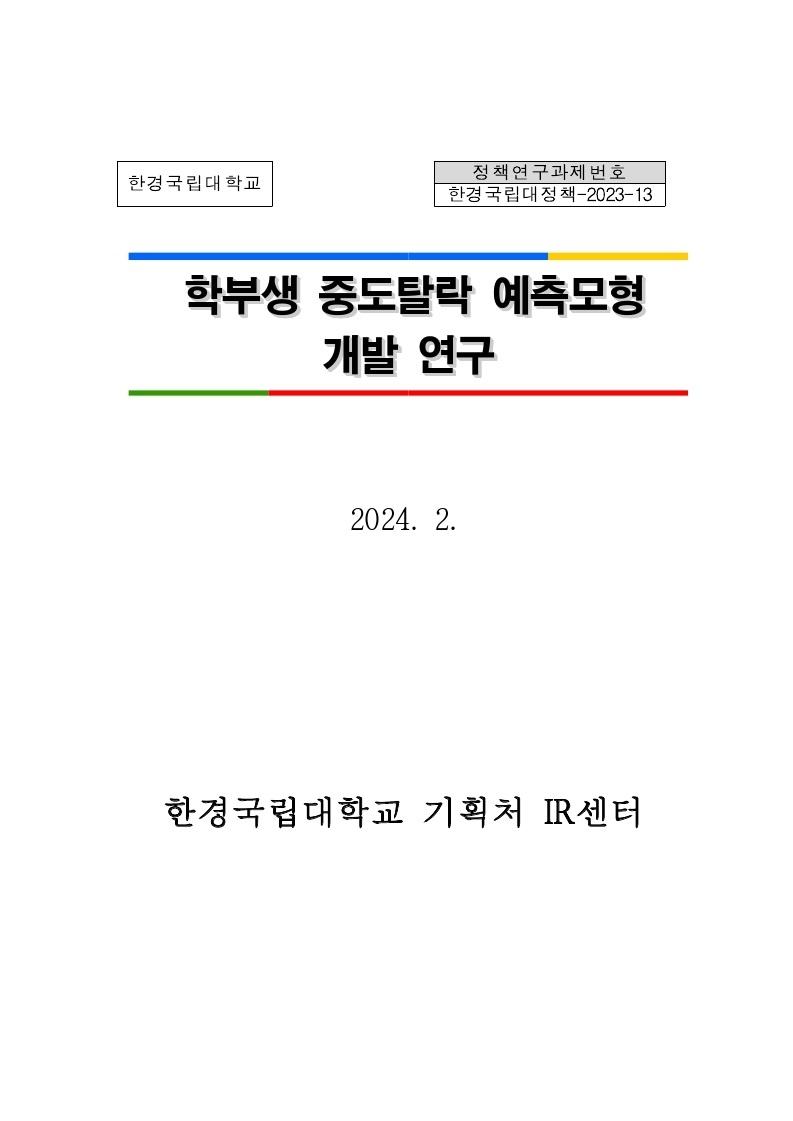 fnctId=bbs,fnctNo=438 RSS 2.0 총 15 개의 게시물이 있습니다. 게시물 검색 제목 작성자 게시글 리스트 제3회 IR센터 콜로키움 작성일 2025.02.26 작성자 이*호 썸네일 자세히 보기 전공자율선택제 학생 대상 교육만족도 문항 개발 및 타당화 연구 작성일 2025.02.26 작성자 이*호 썸네일 자세히 보기 제2차 신입생 중도탈락 예측모형 개발 연구 작성일 2025.02.26 작성자 이*호 썸네일 자세히 보기 HK-대학경쟁력 분석 체계 고도화 연구 작성일 2025.02.26 작성자 이*호 썸네일 자세히 보기 2023년 HK-대학경쟁력 분석 보고서 작성일 2024.09.25 작성자 신*울 썸네일 자세히 보기 통합대학(한경국립대학교) 인재상 및 핵심역량 개선 연구 작성일 2024.09.05 작성자 총*리자 썸네일 자세히 보기 [기타] 한경대학교 전공 교육과정 인증제 구축 연구 작성일 2024.09.05 작성자 총*리자 썸네일 자세히 보기 [IR연구] 전공자율선택제 학생 지원체계 구축 연구 작성일 2024.07.17 작성자 신*울 썸네일 자세히 보기 [IR연구] HK-대학경쟁력 분석 체계 구축 연구 작성일 2024.07.17 작성자 신*울 썸네일 자세히 보기 [IR연구] 2023년 학부생 중도탈락 예측모형 개발 연구 작성일 2024.02.21 작성자 신*울 썸네일 자세히 보기 [IR연구] 국내 대학생의 중도탈락 요인 메타분석 연구 작성일 2023.12.29 작성자 박*명 썸네일 자세히 보기 [IR시스템] IR 통합 시스템 구조도 및 데이터 이행 프로세서 구축 연구 작성일 2023.12.29 작성자 박*명 썸네일 자세히 보기 처음 12 1 2 다음 페이지 끝